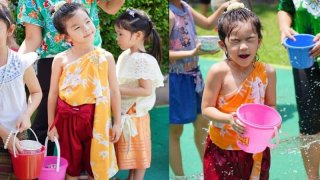 น่ารักมาก น้องมะลิ ห่มสไบนุ่งโจงกระเบน เล่นน้ำสงกรานต์ที่โรงเรียน