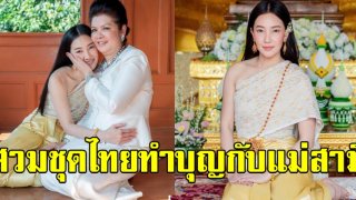 ภาพหาดูยาก ส่องภาพ นุ่น วรนุช สวมชุดไทยสุดสง่าทำบุญร่วมกับ แม่สามี