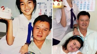 แพนเค้ก เขมนิจในชุดนักเรียนมัธยมฯ กับคุณพ่อและน้องสาว