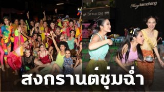 ชมภาพ 77 สาวงาม "มิสแกรนด์" อดใจไม่ไหว ชวนกันเล่นน้ำสงกรานต์ชุ่มฉ่ำ