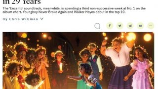 มหัศจรรย์เอ็นกันโต้ We Don't Talk About Bruno กลายเป็นเพลงฮิตอันดับ 1 ชาร์ทหลักของโลก Billboard Hot 100 ครั้งแรกในรอบ 29 ปีจากหนังดีสนีย์