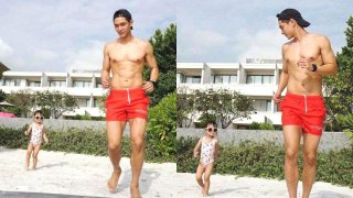 เลือกไม่ถูก !! ไม่รู้ว่าจะโฟกัสตรงไหนดี ระหว่างความน่ารักของคุณลูก น้องโนล่า กับซิกแพคแน่นๆ ของคุณพ่อ มิกกี้ 🤤🤣
