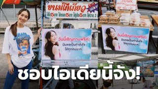 ชอบไอเดียนี้จัง มิน พีชญา เหมาของกินรถเข็นข้างทางพร้อมป้ายประกาศ #วันนี้เชิญทานฟรีค่ะ!