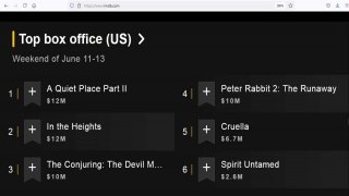 5 หนังทำเงินสูงสุดอเมริกาสัปดาห์ล่าสุด ดินแดนไร้เสียง 2/ In The Heights/ ปีเตอร์แรบบิท 2/ คอนเจอริ่ง 3/ ครูเอลล่า