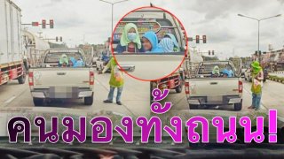 คนมองกันทั้งถนน! สาวกเด็กอันลอร์นั่งท้ายกระบะ ท้องฟ้าเริ่มครึ้มเปลื้ยนสีอย่างน่าอัศจรรย์
