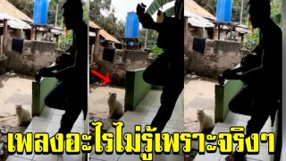 น่ารักอ่ะ หนุ่มดีดกีตาร์ เจ้าเหมียวทนไม่ไหวขอร้องเพลงด้วย