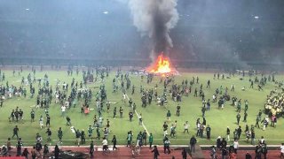 (มีคลิป)แฟนบอลอินโดฯเดือด!!!ลุกฮือก่อจรจลเผาสนาม หลังทีมแพ้ยับ