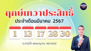 ฤกษ์เทวาประสิทธิ์ ประจำเดือน มีนาคม 2567 วันที่ 1 ,13,17,28,30 มีนาคม 2567 อ.เทวินโท พรหมญาณ พยากรณ์