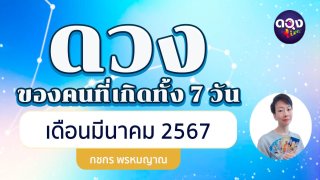 ดวงของคนที่เกิดทั้ง 7 วัน เดือนมีนาคม 2567 พยากรณ์โดย กชกร พรหมญาณ