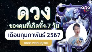 ดวงของคนที่เกิดทั้ง 7 วัน เดือนกุมภาพันธ์ 2567 พยากรณ์โดย กชกร พรหมญาณ