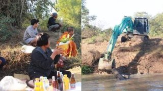 ขนลุก! ตะเคียน 100 ปี แบ็คโฮยกไม่ขึ้น..ต้องนิมนต์พระ พราหมณ์ทำพิธีอัญเชิญ