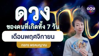ดวงของคนที่เกิดทั้ง 7 วัน เดือนพฤศจิกายน โดย กชกร พรหมญาณ