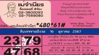 แนวทางการซื้อสลากกินเเบ่งรัฐบาลไทย “เจ๊ฟองเบียร์” ประจำวันพุธ ที่ 16 ตุลาคม 2567