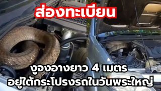 ส่องทะเบียนรถ งูจงอางยาว 4 เมตร อยู่ใต้กระโปรงรถในวันพระใหญ่