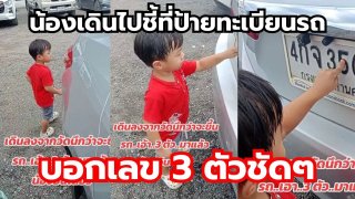 น้องเดินไปชี้ที่ป้ายทะเบียนรถ บอกเลข 3 ตัวชัดๆ