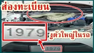 แห่ส่องทะเบียนรถ งูตัวใหญ่เข้าในรถ