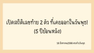 เปิดสถิติเลขท้าย 2 ตัว ที่เคยออกในวันพุธ! 5 ปีย้อนหลัง (16/08/66ตรงกับวันพุธ)
