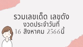 เลขเด็ด 16/8/66 หวยเด็ด งวด 16 สิงหาคม 2566