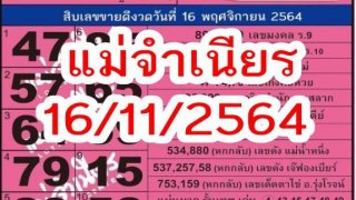รวม 10 เลขเด็ด เลขดัง หวยแม่จำเนียร งวดวันที่ 16 พฤศจิกายน 2564