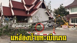 ส่องป้ายทะเบียน ต้นโพธิ์อายุกว่า 100 ปี ล้มทับรถเก๋งพังยับ