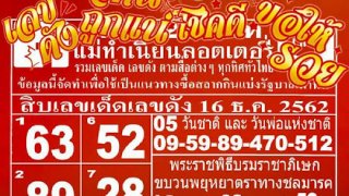 งวดนี้เอาไปรวยอีก! หวยแม่ทำเนียนลอตเตอรี่ งวดวันที่ 16/12/62