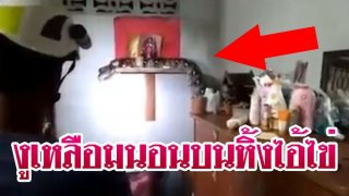 คอหวยฮือฮา งูเหลือมขึ้นมานอนบนหิ้งไอ้ไข่