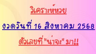 วิเคราะห์หวย งวดวันที่ 16 สิงหาคม 2568 ตัวเลขที่ “น่าจะ” มา!!