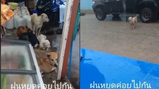 นุดจ๋า! ขอน้องหมาหลบฝนด้วยคน..ฝนหยุดเมื่อไหร่ เดี๋ยวพวกเราไปน่ะ