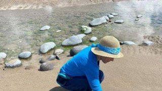 ผลงานการเรียง ก้อนหินให้เป็นรูปนกอินทรีย์ขนาดใหญ่ เป็นงานศิลปะบนผืนทรายที่สวยงามมากๆเลยเน่อ