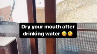 เเม่สอนว่ากินน้ำเสร็จ ต้องเช็ดปาก