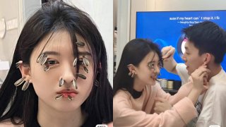 น่ารักคู่รัก เล่นหนีบหน้าด้วยเมล็ดทานตะวัน