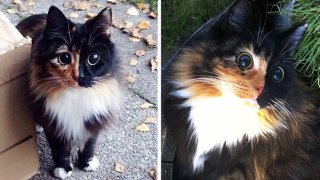 แมวตาบอดได้รับการช่วยเหลือจากท้องถนนมีดวงตาที่สวยงามอย่างไม่น่าเชื่อ
