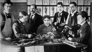 นักศึกษาแพทย์ในช่วงต้นศตวรรษที่ 19 นิยมถ่ายรูปกับอาจารย์ใหญ่