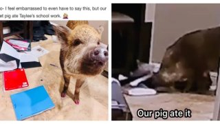 ไม่มีการบ้านส่งครู เพราะหมูกินการบ้านไปแล้ว